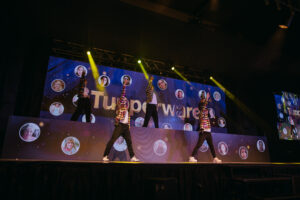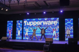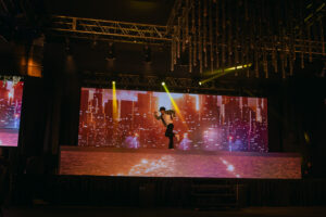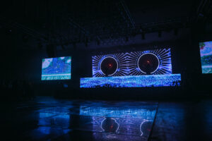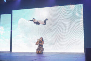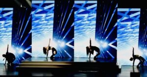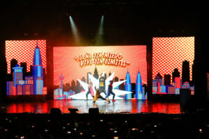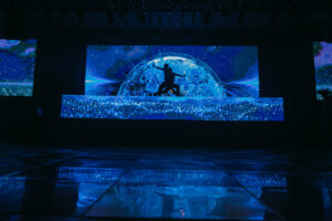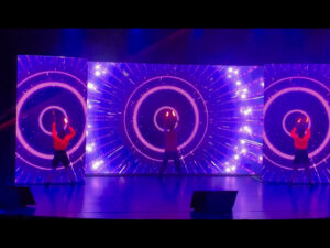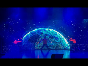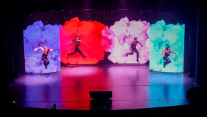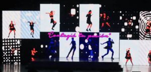 Performance multimedia donde bailarines, cantantes o acróbatas interactúan con el contenido audiovisual en una sincronía perfecta